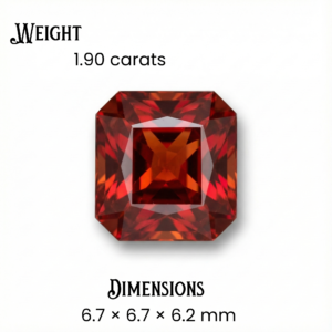 📏 High-Depth Dimensions (6.7 x 6.7 x 6.2 mm): The significant depth of 6.2mm indicates a well-cut stone that retains color saturation well, preventing the gem from looking “flat” or windowed in the center.